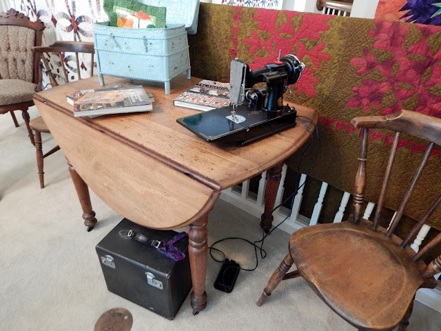 Sharon has plenty of little displays in her sewing studio. Here is her Featherweight, ready at a moment's notice.