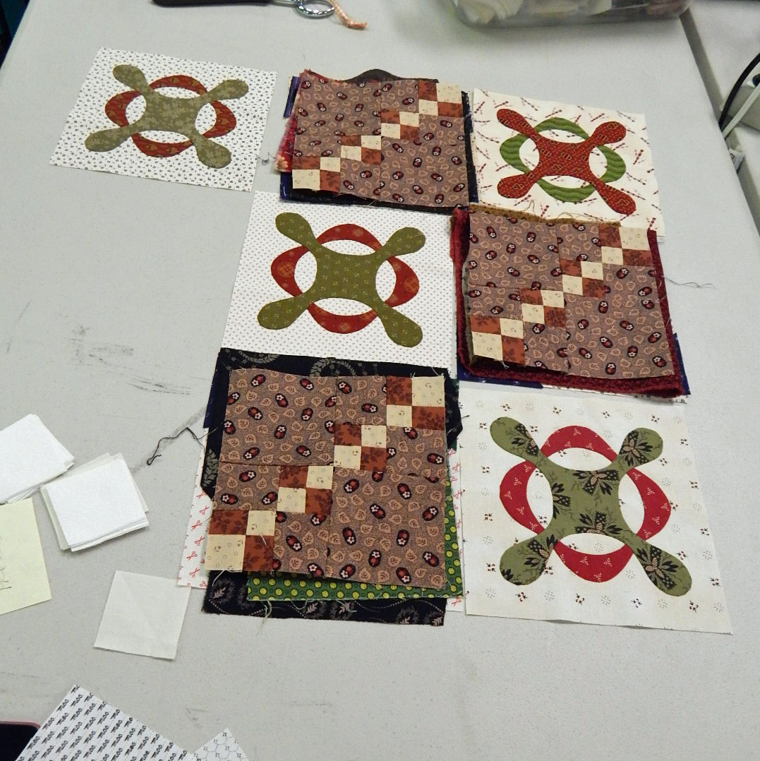 Against one of the walls in the room, one of our quilters was busy assembling blocks. It is so much fun to see quilts start coming to life!