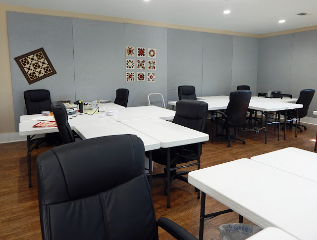 And here we are, at the last place on the Studio Tour - Ronda Stockton's Pieceful Stitches: And Sew it Began quilting and craft center. Ronda bought an old 1920-1930 era home and completely revamped it, making it a true delight! Located in LaPorte, Texas, near the Painted Pony 'n Quilts (one of the largest quilt shops in Texas), you can reserve it for retreats, workshops, and more at www.andsewitbegan.com. You will not be disappointed!
