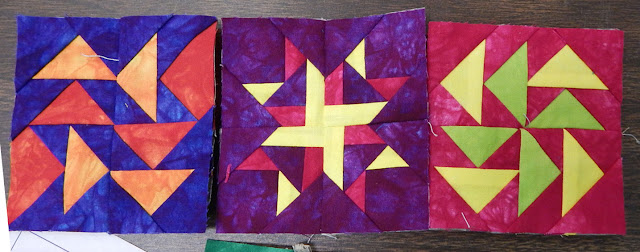One of the gals in the retreat was working on feathered star blocks and setting blocks. I was intrigued by her grand choice of colorful fabrics.