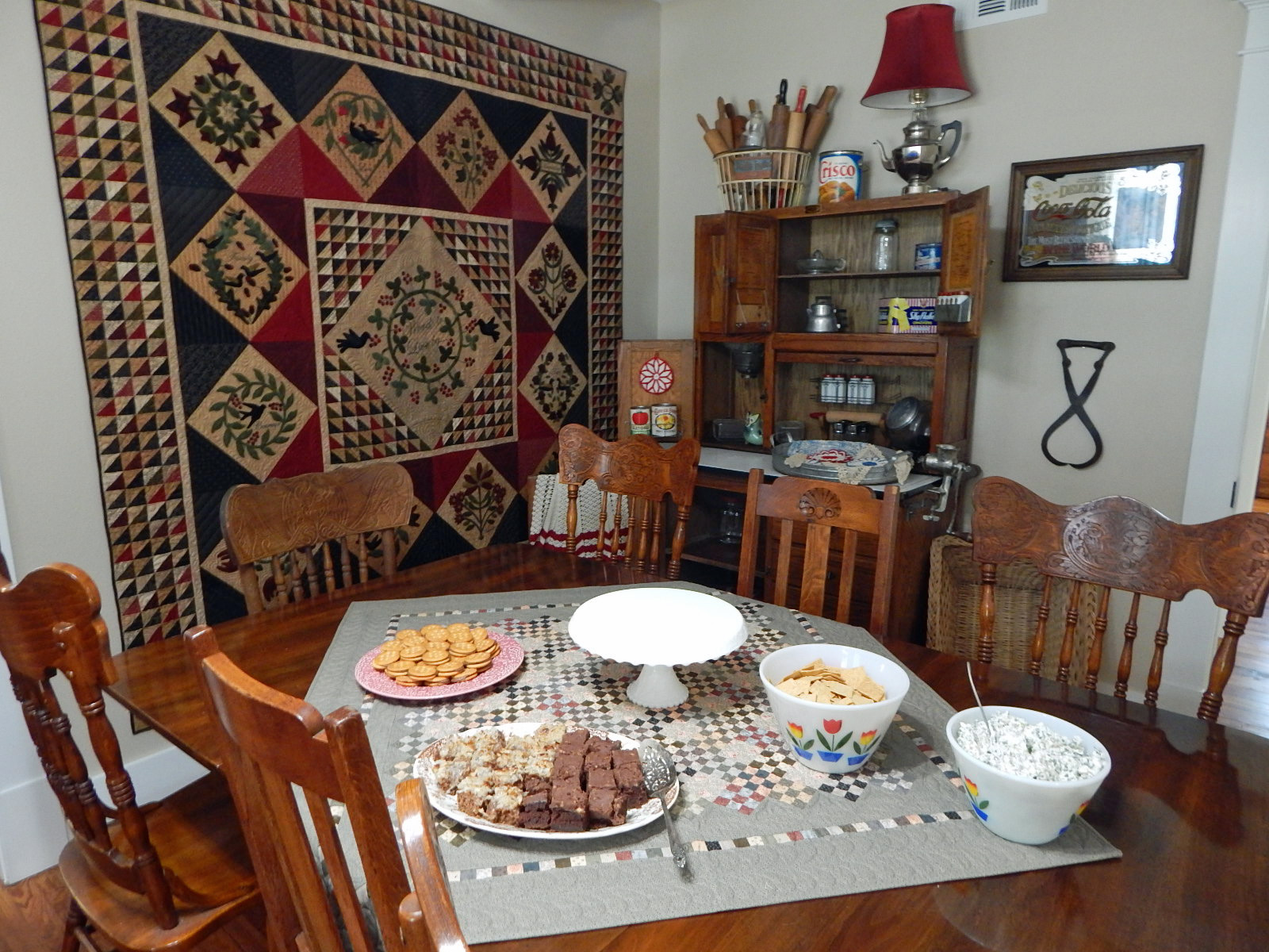 The dining room has a beautiful quilt - and sweet treats for all. Whee!!!