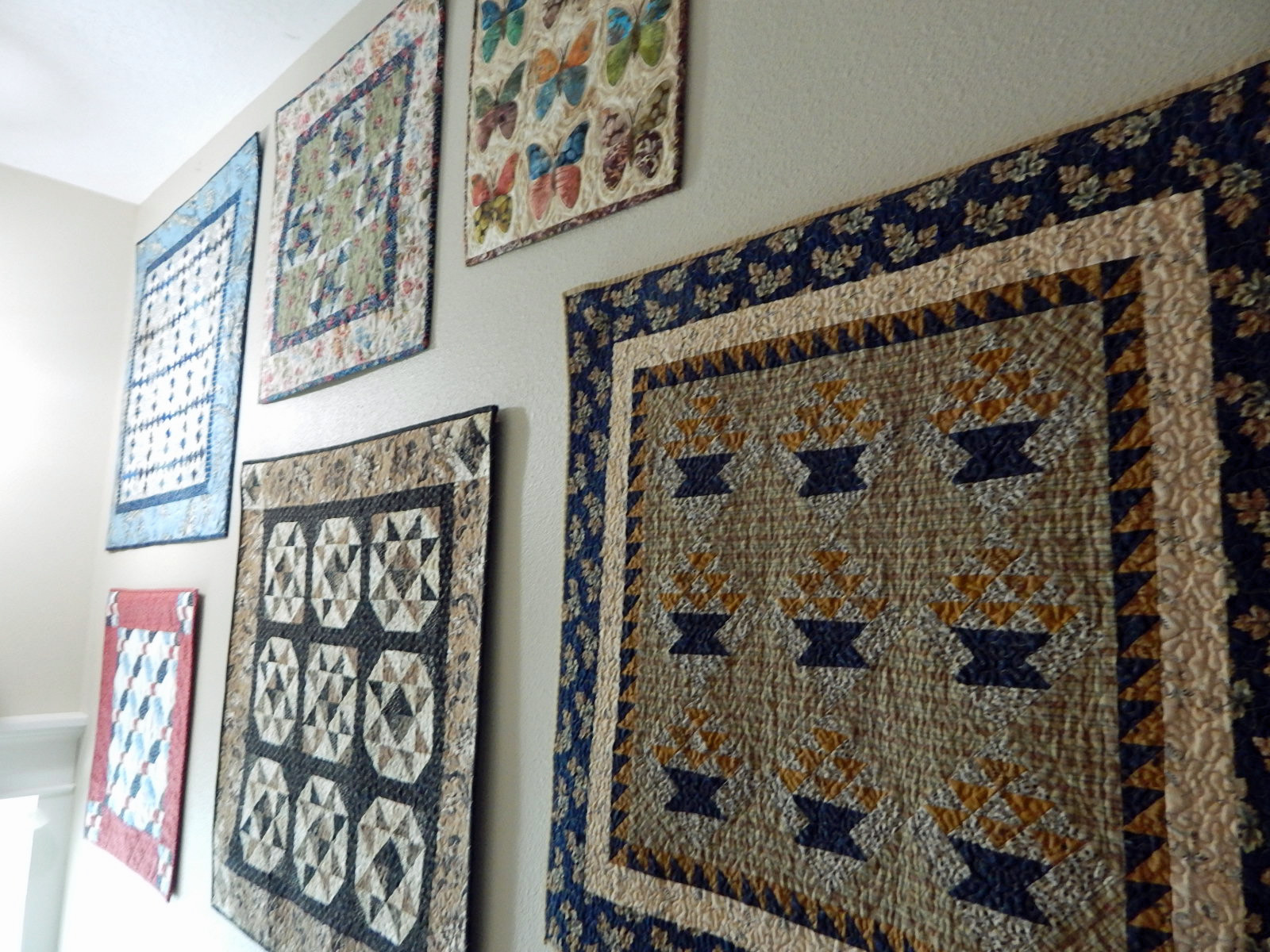 There is a wall of mini-quilts in the house. My mouth just won't stay shut!