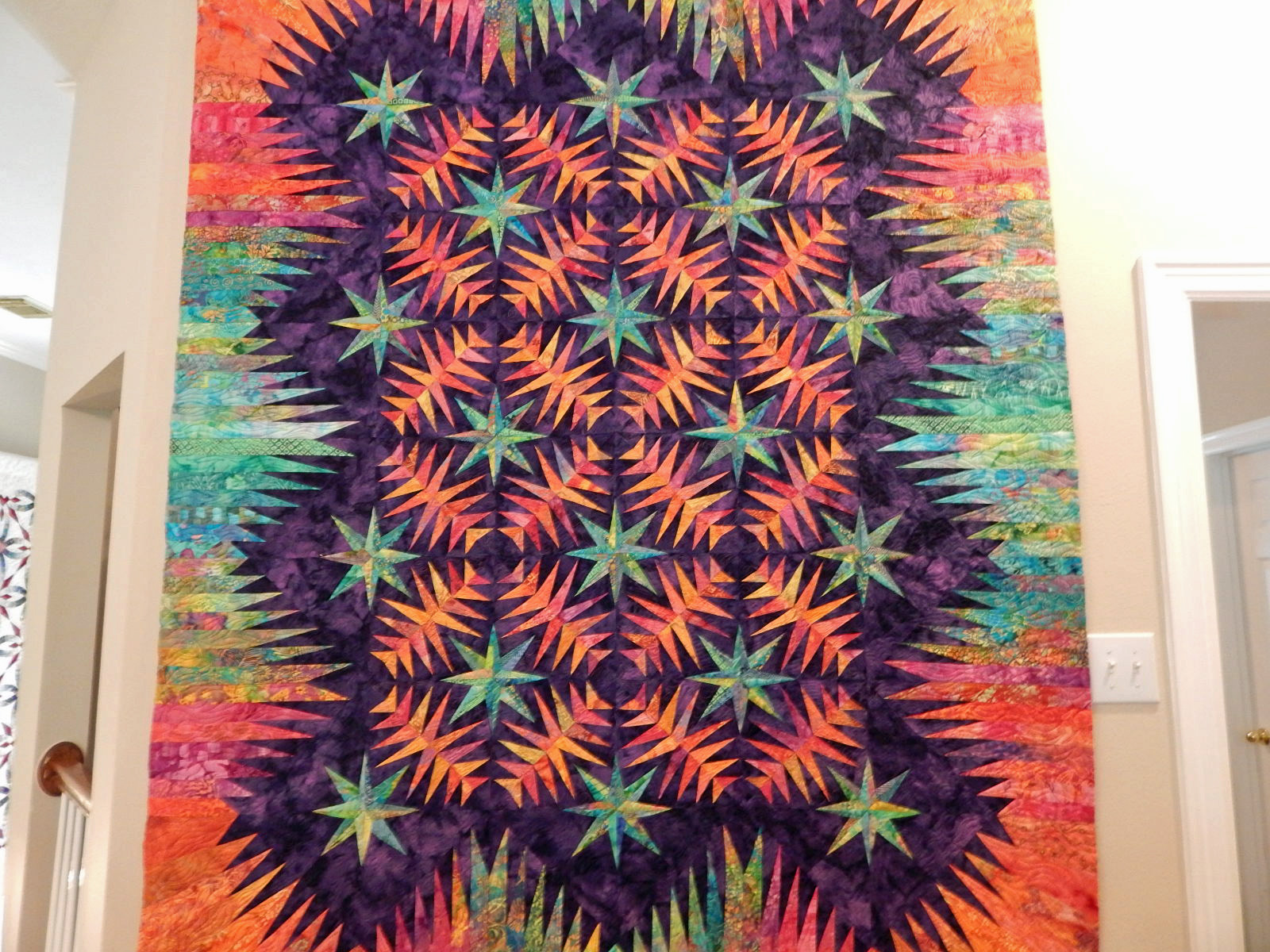 This quilt was another amazing quilt to me. I thought these were simple but grand evening star blocks. The colors were beautiful.