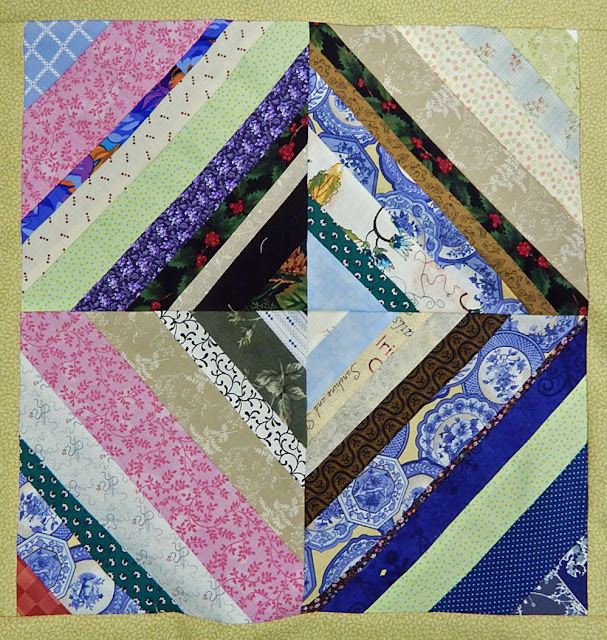 Here's a close-up of the block. It is also a wonderful scrap-eater. Use the string-pieced strips as leaders and enders if you do that kind of power-sewing (I don't - I haven't quite figured out why note though!).